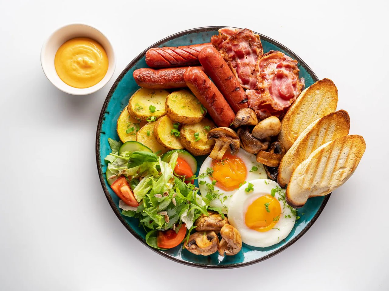 Pusryčiams naudinga valgyti vaisius, daržoves, košes, pieno produktus, kiaušinius. Sūrį, kruasanus ar kitus tešlos gaminius reikėtų vartoti nedideliais kiekiais.